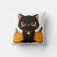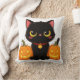 Cute Black Cat and Pumpkins Halloween Throw Pillow