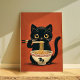 Serve up a bowl of pure cuteness with this black cat ramen wall art. Featuring an irresistibly adorable wide-eyed cat expertly using chopsticks to enjoy a steaming bowl of noodles, this illustration combines the charm of kawaii animal art with the warm comfort of Asian cuisine. The decorative noodle bowl, complete with a sleek dragon motif, adds an extra touch of cultural detail, while the bold red-orange background makes the design pop in any room.