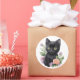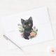Cute Black Cat Floral Whimsical Classic Round Sticker