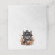 Small folded place card with a cute illustration. A black long-haired cat wearing a black witch's hat. It's ears poking out. Surrounded by orange and brown autumn flowers. Perfect for cat lovers.