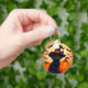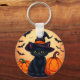 Cute Black Cat in Witch Hat Surrounded by Pumpkins Keychain