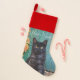 Cute Black Cat Kitten Red Leaves Blue Door -- Name Christmas Stocking