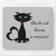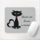 Cute Black Cat Loves Gray Mouse Pad