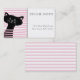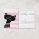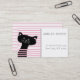 NewParkLane - Personalized Business Cards, with a cute black cat, peeking through the pink blinds, with a modern, abstract pattern of pink and white stripes on the back.