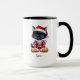 Cute black kitten in Christmas pajamas holding a cup of holiday cocoa. The perfect little Christmas gift for cat lovers.