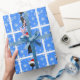 This holiday Christmas wrapping paper features a cute black Siamese cat wearing a Santa hat with a blue and white snowflake background. Some graphics by artwork©delightful-doodles.com *