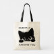 A modern tote bag with a cute cat and the phrase "silently judging you".