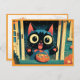 Send spooky smiles with this adorable Halloween postcard featuring a cute black cat dressed up for trick or treat night. Perfect for cat lovers and anyone who enjoys fun, festive Halloween vibes. Great for mailing, collecting, or gifting during the spooky season!
