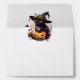 Cute Black Cat wearing a Witches Hat with Jack-o-lantern and Autumn Leaves Halloween Envelope