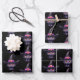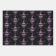 Wrapping paper sheets with a fun Halloween themed illustration for cat lovers. A big-eyed black cat wearing a large black witch's hat with a purplish pink belt around the brim.