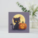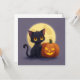 A cute and spooky design featuring a black cat sitting next to a classic, carved jack-o'-lantern. This festive invitation is the perfect accessory for Halloween parties or for any cat lover who enjoys the spooky season.