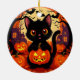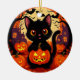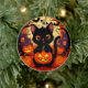 Cute Black Cat with Halloween Pumpkins Ceramic Ornament