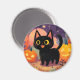 Cute Black Cat with Jack-o-Lanterns - Magnet