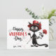Cute Black Cat Valentine's Day Card - Hilarious Design with Red Hat and Rose. Ideal for Kids and Cat Lovers.