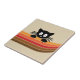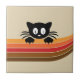 Abstract retro style illustration with yellow, orange, red and brown stripes and black cute cat decoration on beige background for every cat and retro lover. It is easy to customize it by adding your name/monogram etc.
