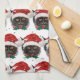 Cute Black Cat with Santa Hat on Christmas Kitchen Towel