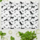 Simple black silhouette pattern of cat and bat silhouettes. One cat is stretching, another is just standing while a third one is reaching toward a flying bat. This design has a modern Halloween aesthetic for those who enjoy a minimal and stylish seasonal look.
