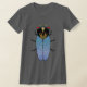 I love wearing a reprint of my colored pencil drawing of Annie the cat looking over the hillside. My illustration is based on a picture I took of Annie the manx cat. The printing turned out lovely, and the shirt is soft and thick. The American Apparel shirt run on the smaller size, so I always order a large or extra large.