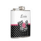Cute Black Dots Pink Rose Chevron Bow and Name Flask