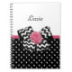 Cute Black Dots Pink Rose Chevron Bow and Name Notebook