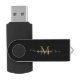 Cute Black Gold Script Typography Monogram USB Flash Drive. An elegant gold monogram with a cute white, decorative script personalized name with botanical swashes.