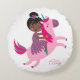 Cute Black Haired Girl Riding on a Unicorn Round Pillow