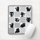 A simple Mouse Pad in black and white combination with gray and white patterns in the form of a board where the pattern alternates with a cute black kitten on a striped background. An ideal choice of birthday, holiday gift for your loved ones who are also cat lovers.