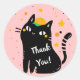Adorable stylized black kitty wearing an orange cap in the background of stars and dots. The text is in white and it's personalized. This is a digital illustration.