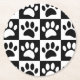 Cute Black Paw Print Checkerboard Pattern Round Paper Coaster