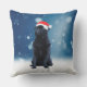 Cute Black Pug Dog Christmas Santa Hat Snow Stars Throw Pillow