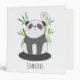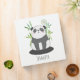 A personalized binder with an illustration of a black and white panda bear sitting in some green watercolor bamboo. A little speech bubble with a heart inside. Cute design with a panda expressing his love.