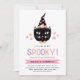 Cute Black Witch Cat Pastel Halloween Birthday Invitation