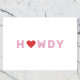 Howdy, partner! Express your Texan warmth with our Texas Howdy Heart Blank Greeting Card, where a heart replaces the 'O' in the classic greeting. The charming design expresses friendliness and is perfect for sending cheerful notes, heartfelt messages, or warm greetings to your loved ones. Whether it's a birthday, celebration, or just to say "hello," this card adds a touch of Texas charm to any occasion. Send a heartfelt "Howdy" with a dash of Southern hospitality! Share a bit of Texas charm and spread joy with this uniquely delightful card that captures the spirit of the Lone Star State.