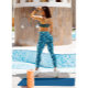 The dainty interlinked rosette design at the waist is truly unique. The poly-spandex makes for a nice fit and available in sizes 0-16. The printing is vibrant and eye-catching.