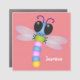 Cute blue and pink dragonfly cartoon illustration car magnet