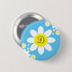 Cute Blue and White Daisy Single Initial Button