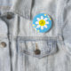 This adorable button features white flowers with a blue background and fancy lettering for personalizing.