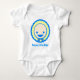 Cute blue and yellow baby in a bonnet tee shirt