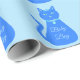 This awesome wrapping paper is prefect for wrapping baby shower gifts or gifts for a new baby or Mother. The design features a digital art image of a cute blue cat with a curly tail. His eyes are pale blue with black pupils. He is wearing a pink bow in his hair and a shining blue collar round his neck with a blue token on it.