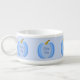 This awesome chili bowl features a digital art image of a cute blue pumpkin with 3 different shades of blue getting darker towards the edges of the pumpkin. There is a green stalk attached to the top. A perfect design for celebrating a baby boy, especially at Thanksgiving. There is custom text so you can include a message.