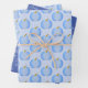This awesome gift wrap set features a digital art image of a cute blue pumpkin with 3 different shades of blue getting darker towards the edges of the pumpkin. There is a green stalk attached to the top. A perfect design for celebrating a baby boy, especially at Thanksgiving. There is custom text on the middle sheet so you can include a message.