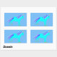 This awesome sheet of stickers features a digital art image of a cute magical blue baby boy unicorn. The main body of the unicorn is blue and the mane and tail are two different shades of blue. The unicorn has golden hooves and a bright shiny gold horn on top of its head. It has a blue diamond shaped eye. The unicorn has a big smile on its face.