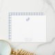 Cute blue baby footprint, baby boy 'from the nursery of' flat thank you note card with blue and white gingham back.