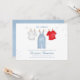 Plain white envelopes are included with paper invitations and will come to fit the invitation size you select. If you don’t need the envelopes, you may choose to not receive them by selecting the dropdown below "Envelopes" and choosing "None." If you’d like to have a design on your envelopes, you can browse all of these available envelopes to find the design that complements your Cute Blue Baby Shower Clothesline Invitation.