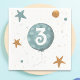 Festive and cute first birthday party paper napkins with an illustration of a blue balloon and the number 3 in white typography. Great for any kid's first birthday or one year celebration, these party napkins will be a delight to use. Illustrated and designed by Patricia Alvarez.