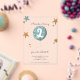 Modern and cute second birthday acrylic invitation with an illustration of a blue balloon and the number two in a beautiful typography. Illustrated and designed by Patricia Alvarez.
