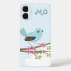 Cute Blue Bird in Blossom Tree Monogram Case-Mate iPhone Case