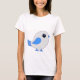 A comfortable and stylish t-shirt featuring a charming, stylized bird design. The graphic shows a plump, cute bird with a light gray body, a deep blue wing and tail feathers, and a matching blue beak and feet. Its large, dark eye gives it an endearing expression. This t-shirt is perfect for bird lovers, nature enthusiasts, or anyone who appreciates a sweet, simple animal design.