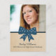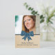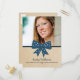 Sweet and charming Cute Bow Graduation Postcard featuring a whimsical polka dot dark blue bow and faux paper texture background. Perfect for announcing your graduate news and inviting friends and family to celebrate the accomplishment. Easy to customize, simply add a photo and your party details in the text fields provided.