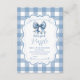 Cute Blue Bow Ribbon Gingham Raffle Diapper Enclosure Card